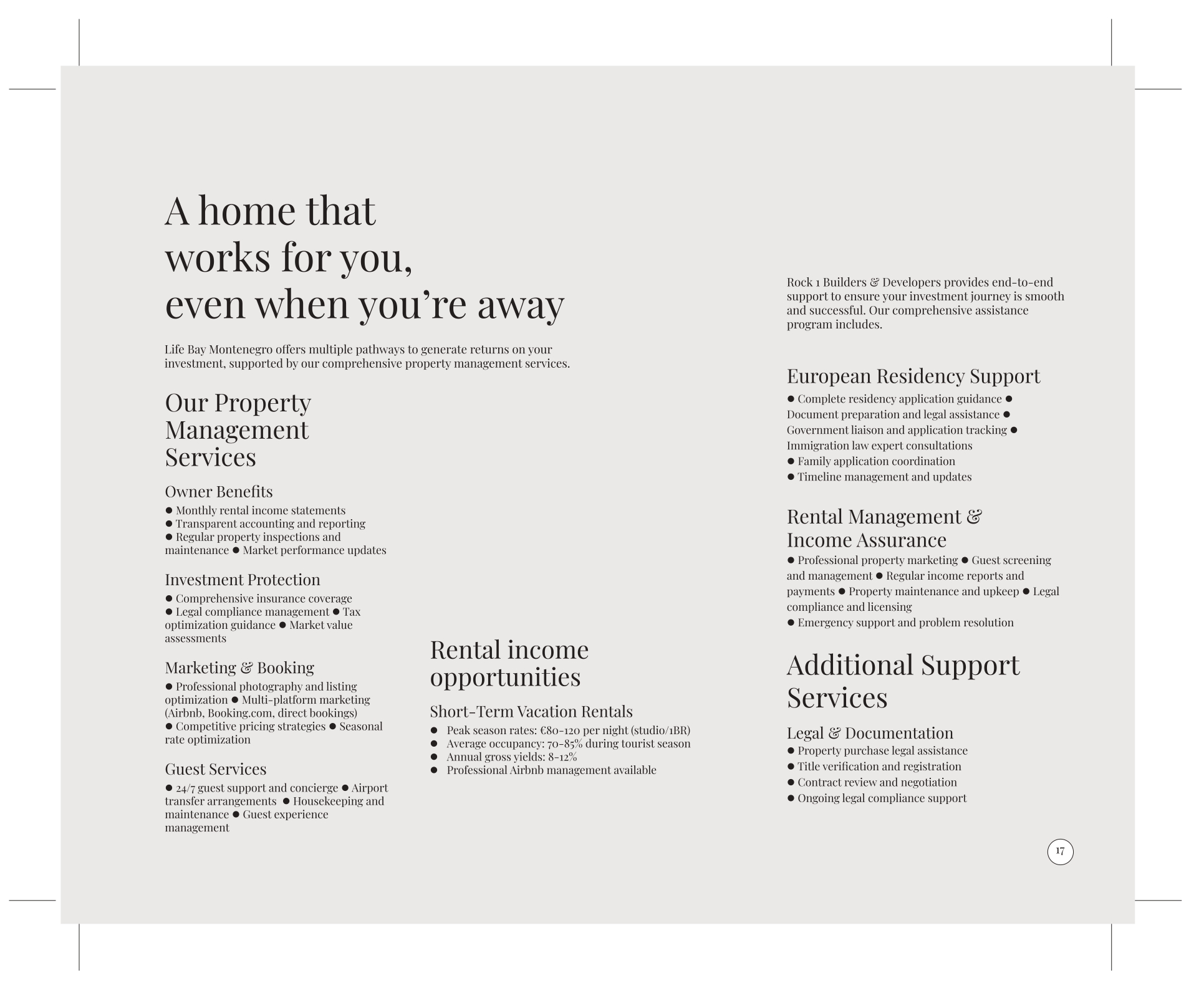 The Life Bay residential project by ROCK1 Builders is a strategic development in Dobra Voda, Montenegro, designed to capitalize on the rapidly expanding real estate and tourism market in the Bar Riviera. Leveraging the region’s competitive property pricing and high demand for coastal rentals, the project offers investors modern, high-quality apartments featuring sea views and essential amenities like a swimming pool and car parking. The development provides a compelling investment proposition, with Montenegro’s favorable climate and growing tourism sector driving strong potential rental yields. Furthermore, the project is backed by the credibility and proven track record of ROCK1 Builders, who also developed the acclaimed Broad Bean Resort & Spa in Munnar, underscoring their commitment to delivering luxurious and high-value properties.