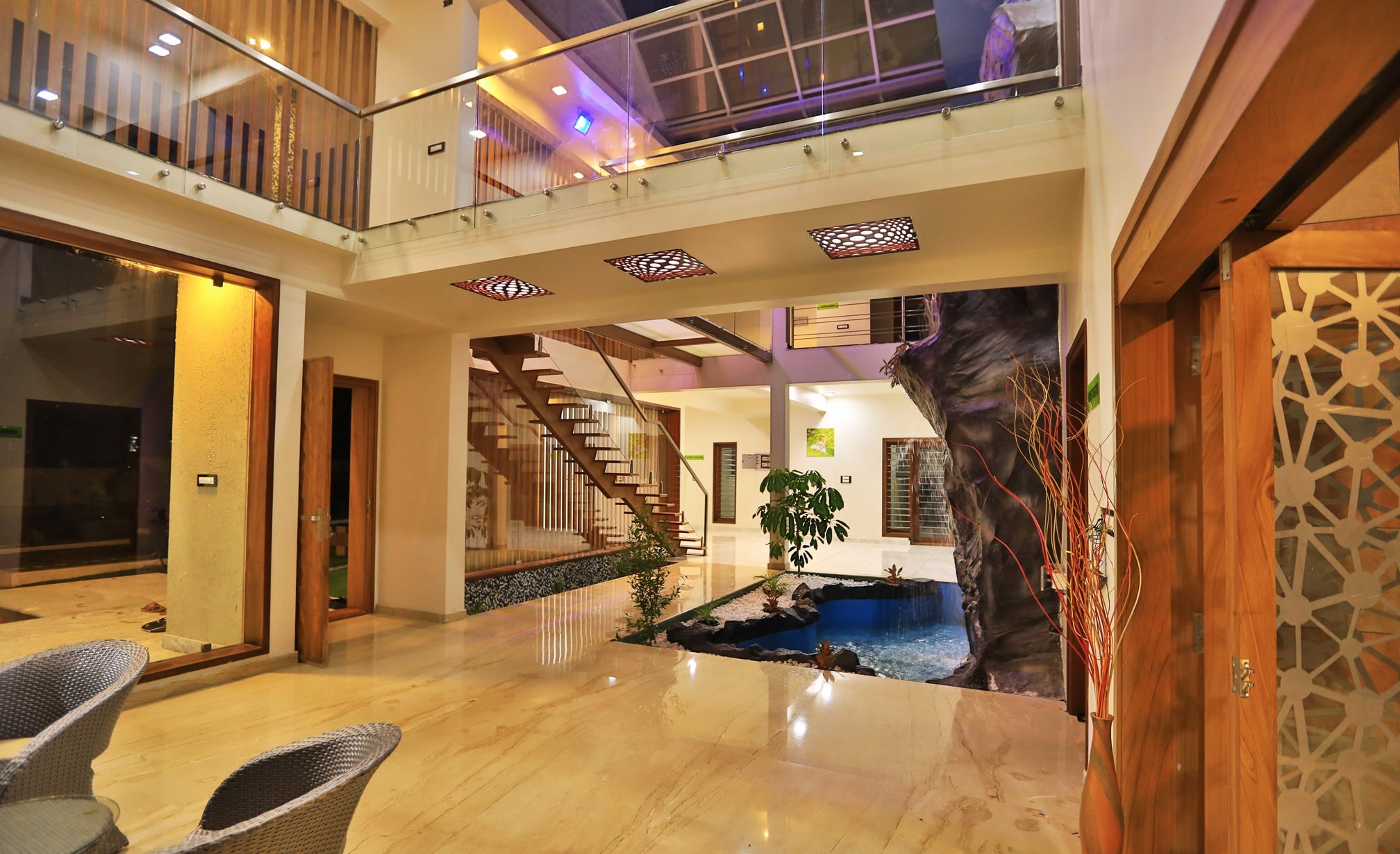 Occupying an expansive 20,000 sq. meter plot, Royal Habitat is a 10,000 sq. ft. architectural masterpiece featuring six grand bedrooms, a lavish home theatre, executive office, and a breathtaking indoor water fountain. The property is surrounded by a landscaped garden, fruit orchard, and private swimming pool — offering the perfect harmony of elegance and serenity. Royal Habitat is the ultimate symbol of prestige and modern royal comfort.